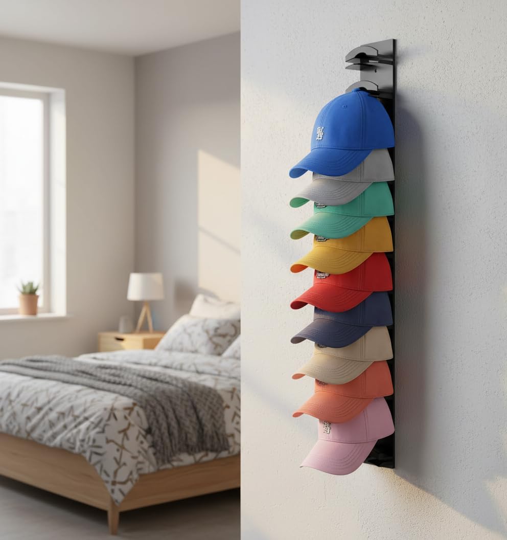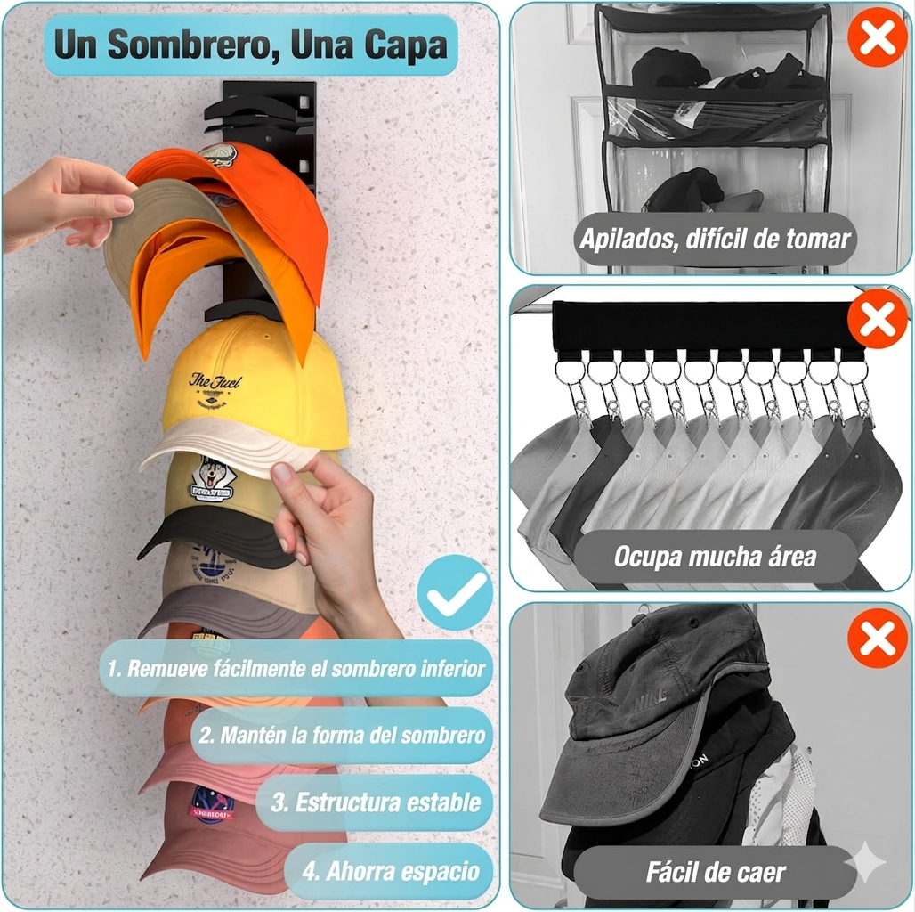Organiza tus gorras en un solo lugar sin ocupar espacio. Ideal para mantenerlas ordenadas y siempre a la mano.