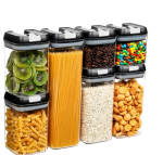Mantén tu cocina más ordenada y tus alimentos frescos por más tiempo con este set de 7 recipientes herméticos. Son ideales para guardar arroz, azúcar, cereales, menestras y otros alimentos secos, ayudándote a aprovechar mejor el espacio en tu cocina.